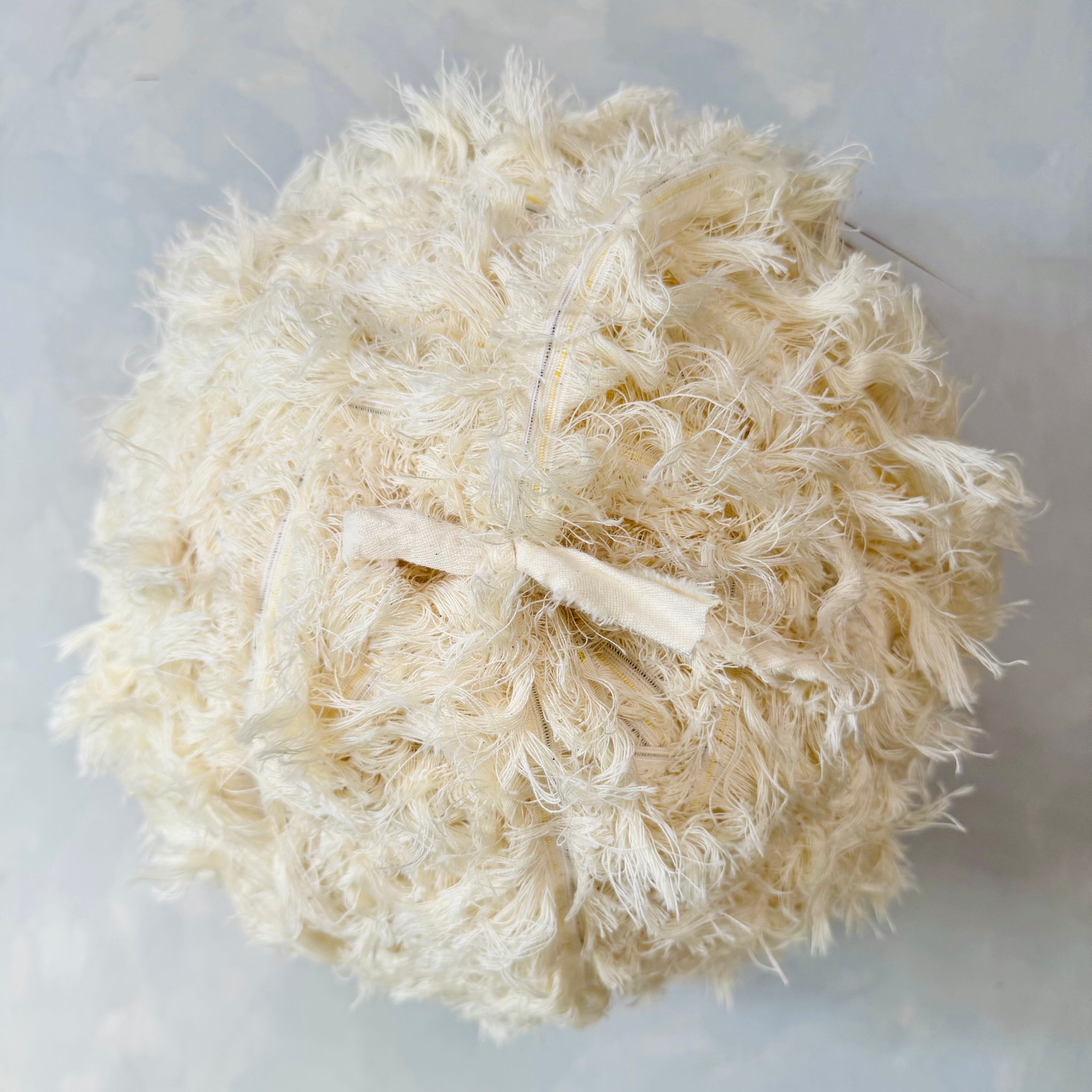 この生成りコットンのふさみみは、棒針・かぎ針10〜15mmで編むことで、ふさふさのムートンのような温かみのある風合いを楽しむことができます。